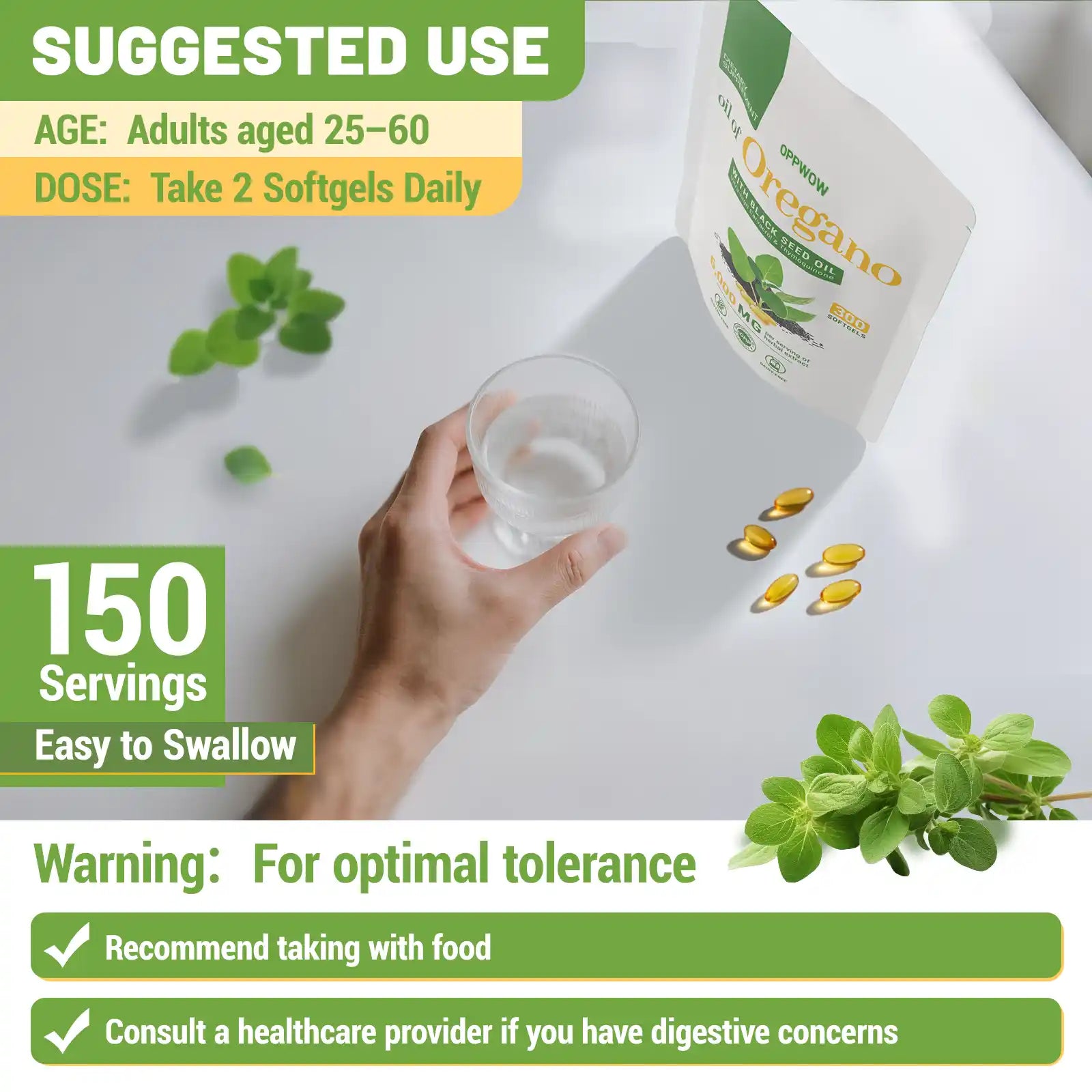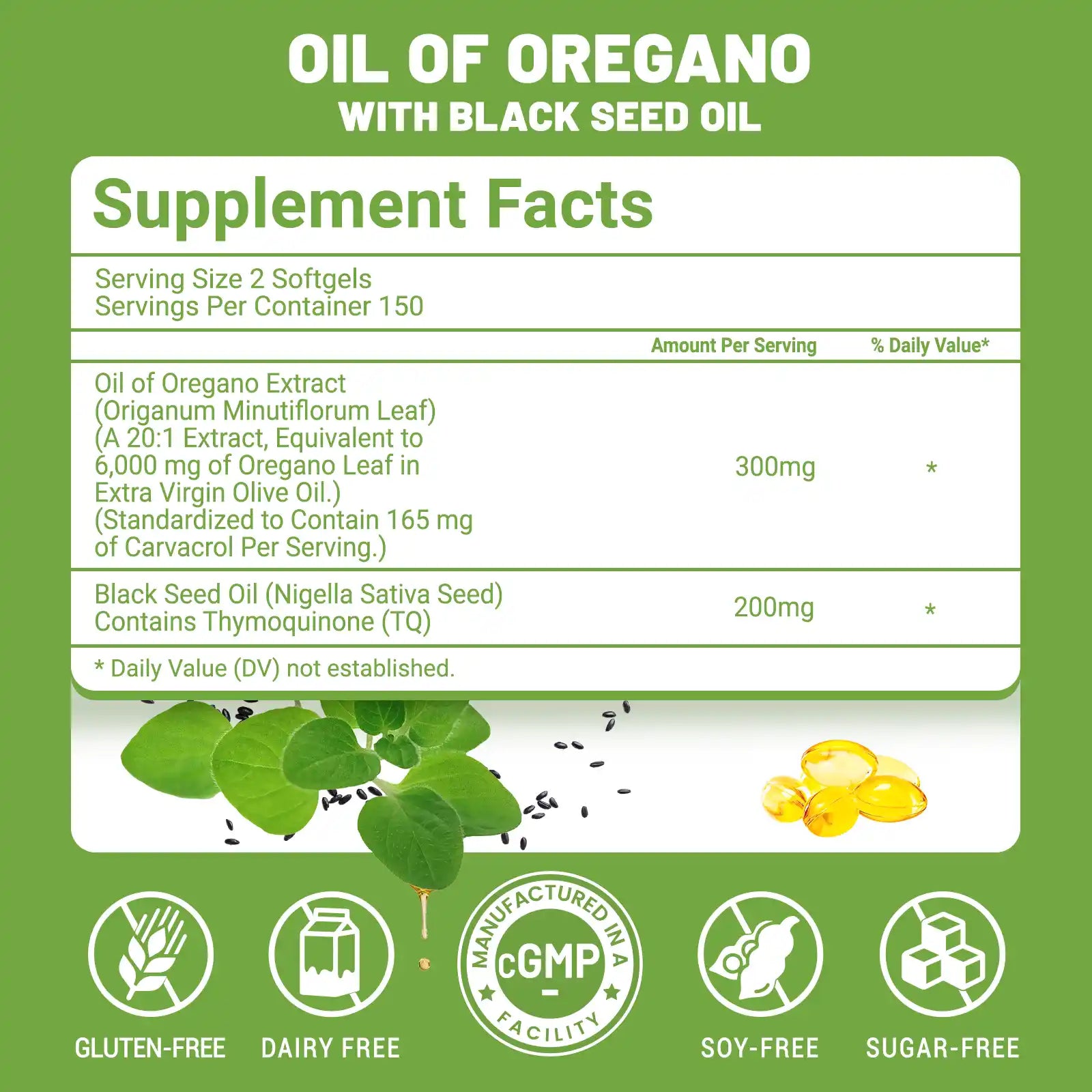 OPPWOW 2 in 1 Oil of Oregano Capsules Health food supplements - Oregano Oil with Black Seed Oil | 300 Capsules - 150 Days Supply